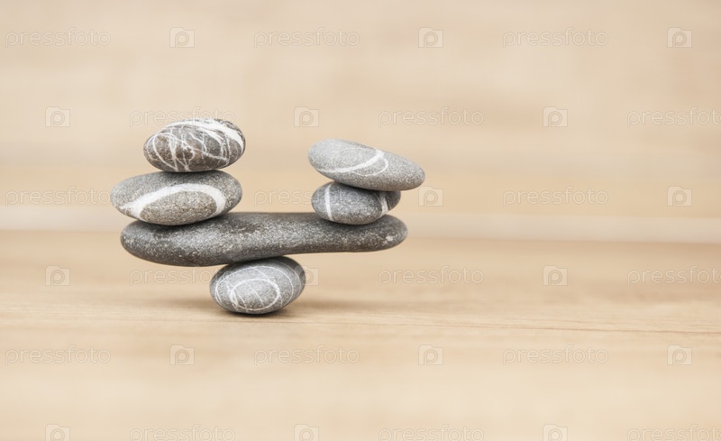 Каменная пирамида из камней на деревянном фоне, простые уравновешенные камни, простота гармонии и баланса, каменные дзен-скульптуры