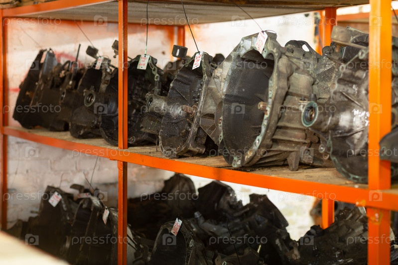 Подержанные автозапчасти на полке магазина