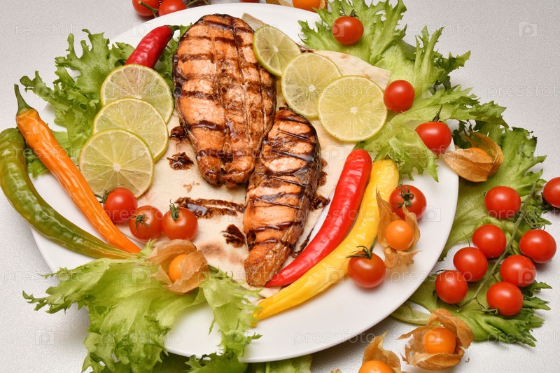 Форель на гриле со свежей зеленью