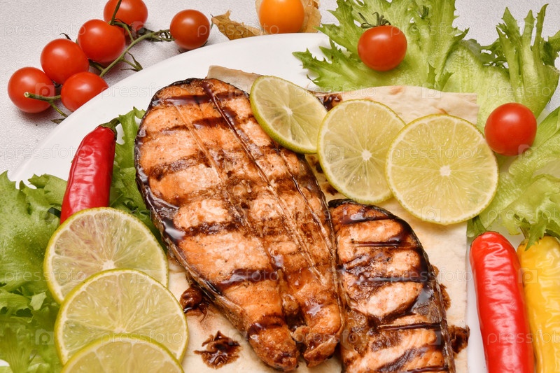 Форель на гриле со свежей зеленью