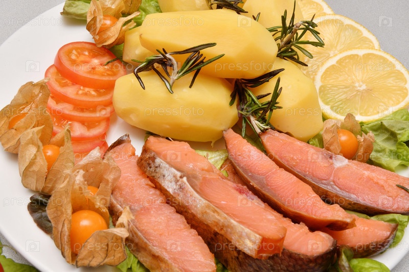 Чавыча холодного копчения с вареным картофелем