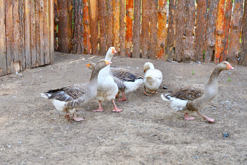 Гуси на ферме в жаркий летний день