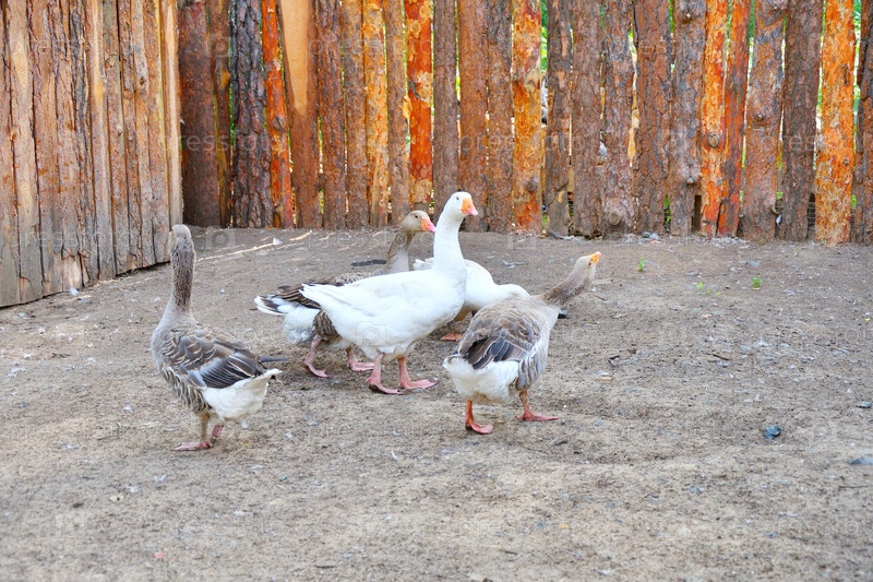 Гуси на ферме в жаркий летний день