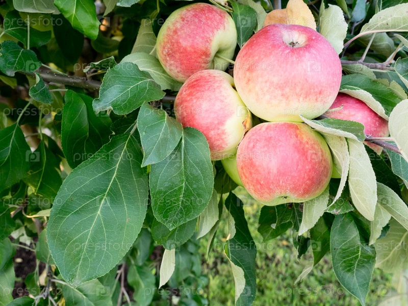 Сбор спелых красных яблок на ветке. Крупный план яблочных фруктов