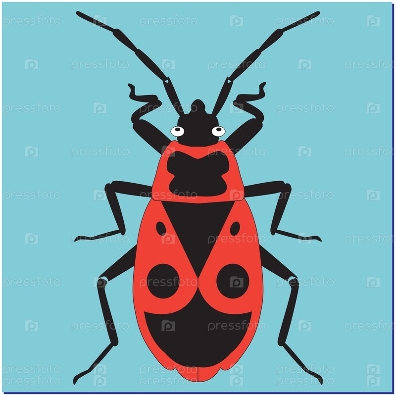 Насекомое клоп солдатик на синем фоне