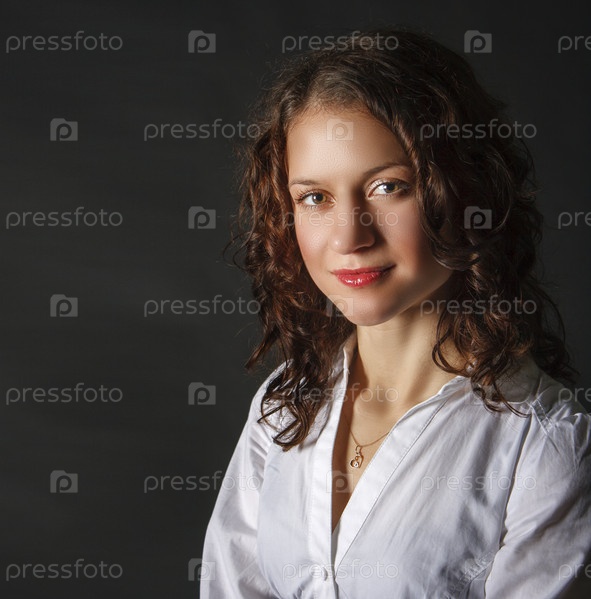 Портрет молодой брюнетки в студии на черном фоне