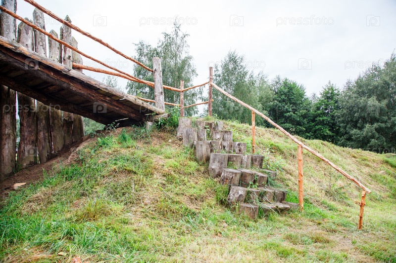 Деревянная лестница в лесу