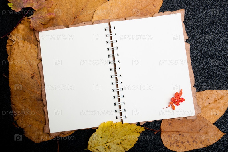 Пустой блокнот на сухих осенних листах желтые цвета красный оранжевый природа задний фон вид сверху копировать пространство список дел