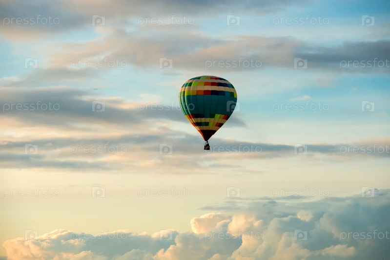Красочный большой воздушный шар летит против облачного неба