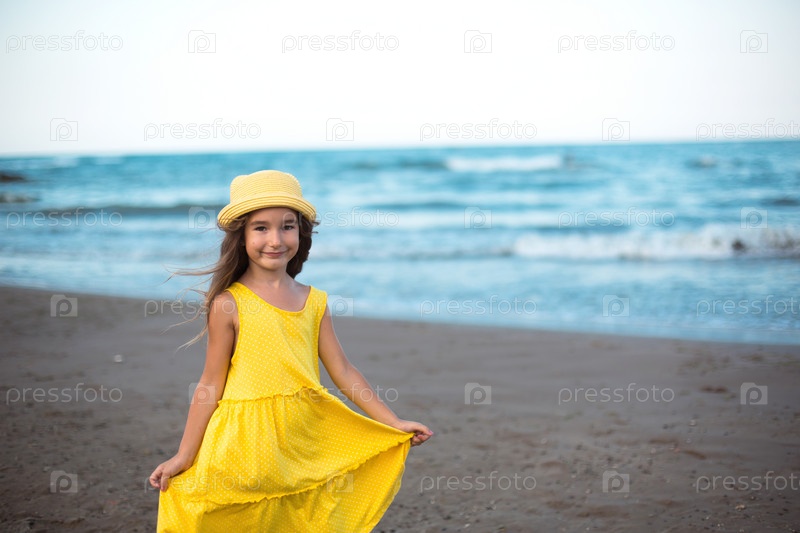 Портрет девушки на берегу моря. Ребенок наслаждается волнами, отдыхает на пляже, путешествует