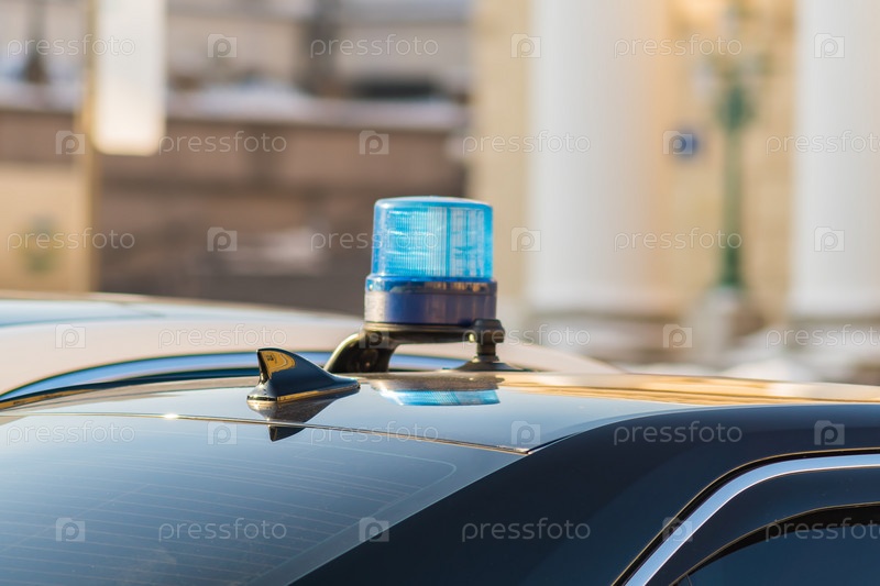 Синий аварийный мигающий свет на крыше автомобиля, clsoeup
