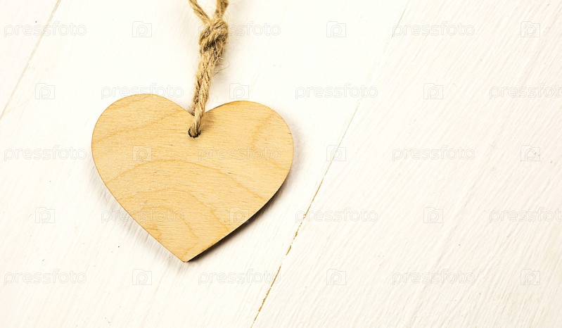 Деревянная бирка в форме сердца с крупным планом из джутовой веревки. Бланк, приглашение, день святого валентина, свадьба. Скопируйте пространство, макет