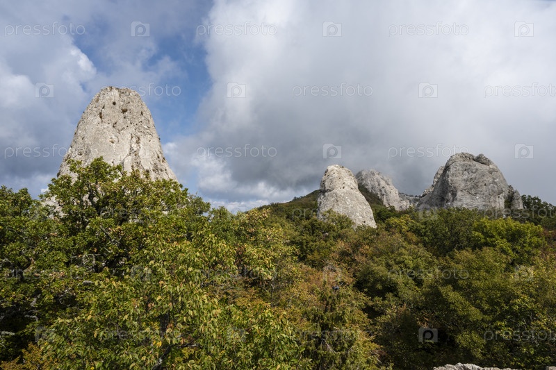 Храм солнца у горы Ильяс Кая, недалеко от поселка Ласпи, Республика Крым, Россия. Пасмурный день 25 сентября 2020 г
