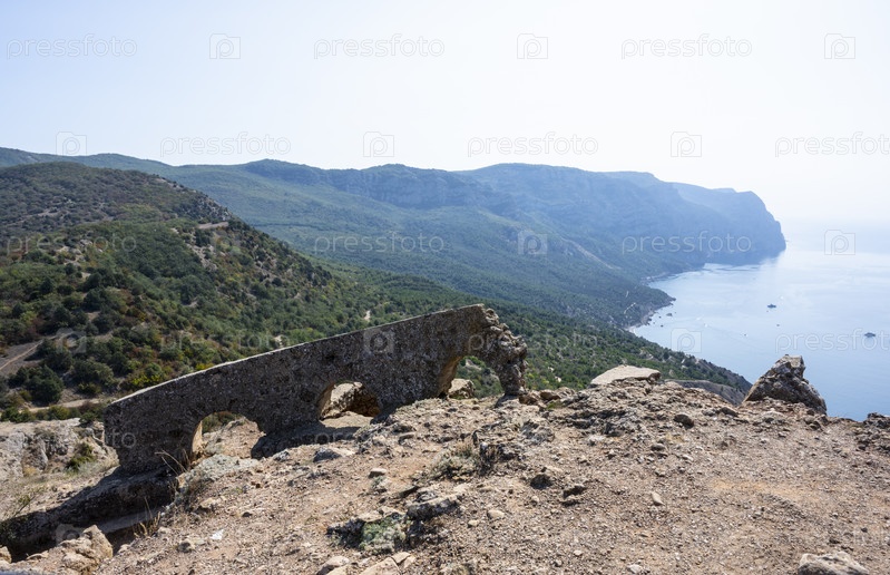 Руины южного форта в Балаклаве, Республика Крым, Россия. Ясный солнечный день 23 сентября 2020 г