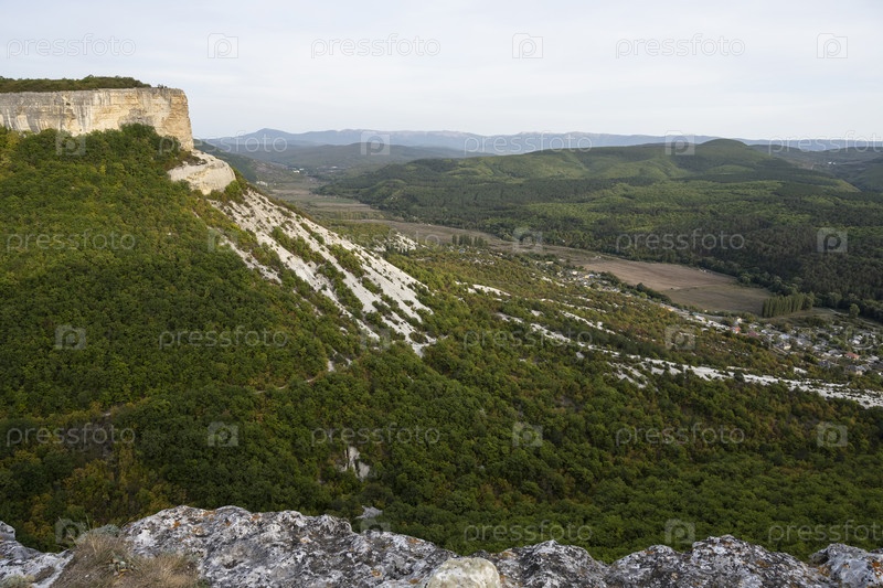 Вид на горы из пещерного города Качи Калион в Бахчисарае в Республике Крым, Россия. Ясный солнечный день 28 сентября 2020 г