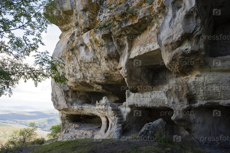 Пещерный город Тепе-Кермен в Республике Крым, Россия. Солнечный день 30 сентября 2020 г