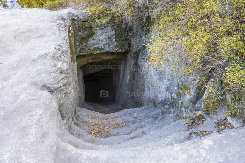 Пещерный город Эски-Кермен в Республике Крым, Россия. Ясный солнечный день 29 сентября 2020 г