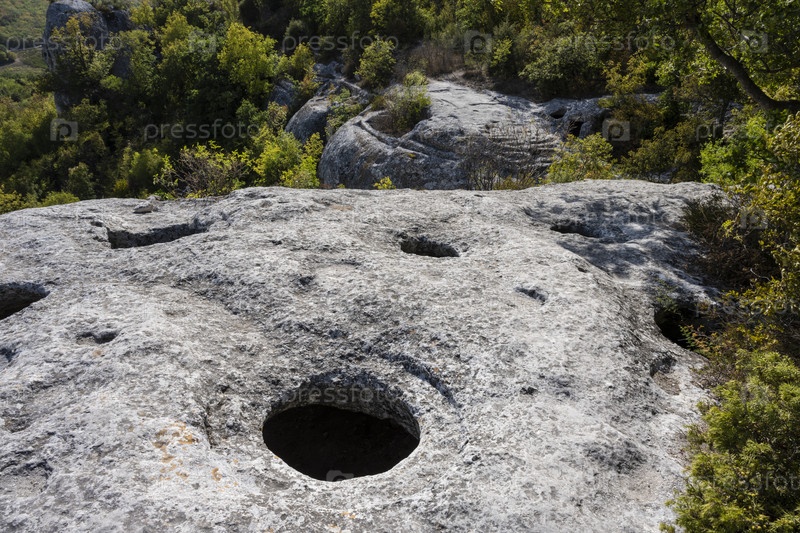 Пещерный город Эски-Кермен в Республике Крым, Россия. Ясный солнечный день 29 сентября 2020 г