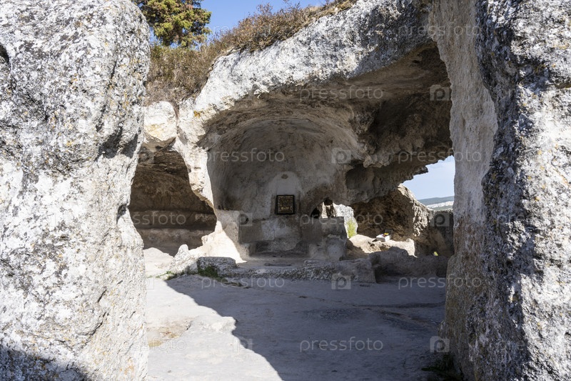 Пещерный город Эски-Кермен в Республике Крым, Россия. Ясный солнечный день 29 сентября 2020 г