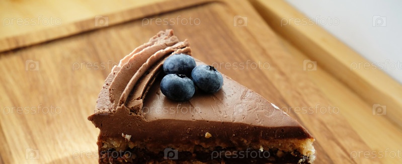 Киевский торт с шоколадной глазурью и черникой, крупным планом. Горизонтальный баннер