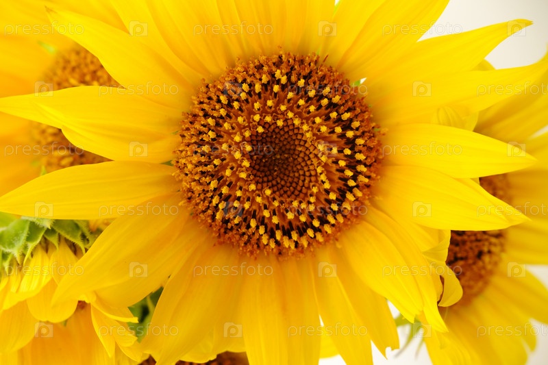 Подсолнух в букете крупным планом. Летний яркий сочный фон
