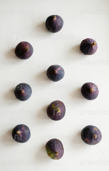Свежий инжир на белом фоне, расположение в геометрическом порядке