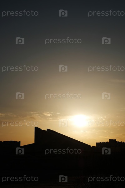 Силуэт городской пейзаж. Очертания современных зданий на закате