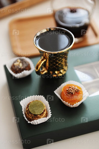Авторские конфеты на основе сухофруктов. Чашка кофе. Здоровый образ жизни