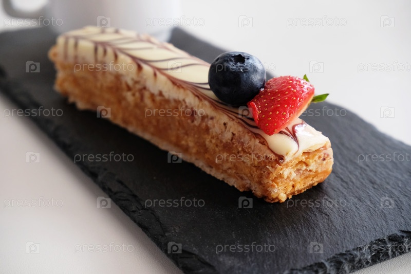 Кусок торта Эстерхази на черной грифельной доске