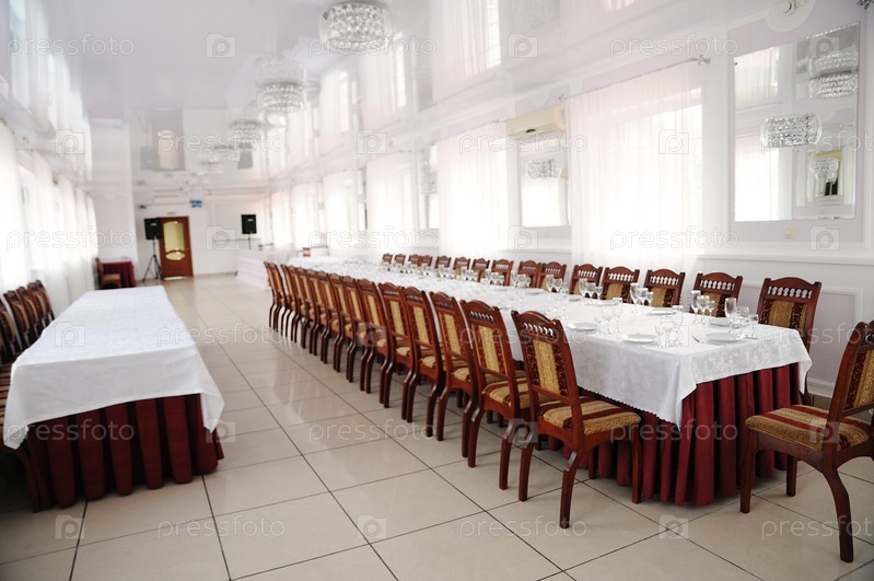 Светлый, просторный банкетный зал без людей