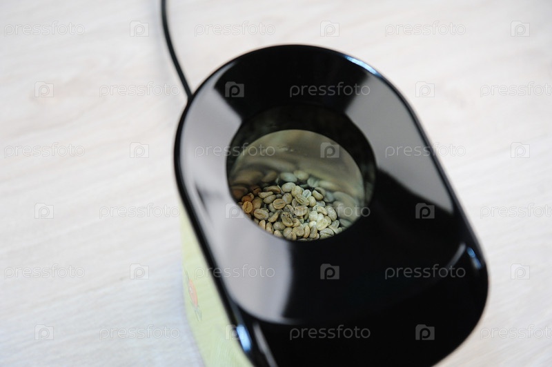 Домашнее жаркое из зеленых кофейных зерен в попкорне. Вид сверху