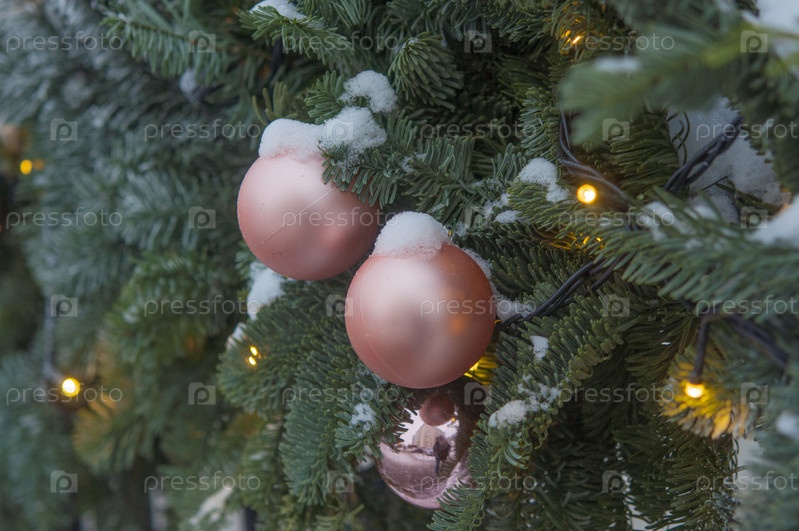 Рождественская елка с украшением под снегом