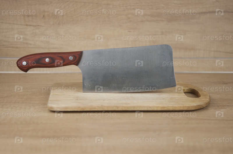 Разделочная доска и кухонный нож на старом деревянном фоне