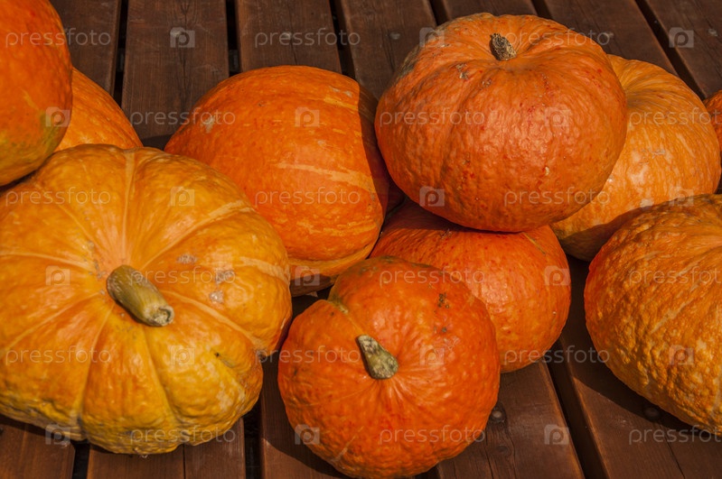 Осенний фон. Спелые тыквы на деревянном фоне. Концепция благодарения и хэллоуина