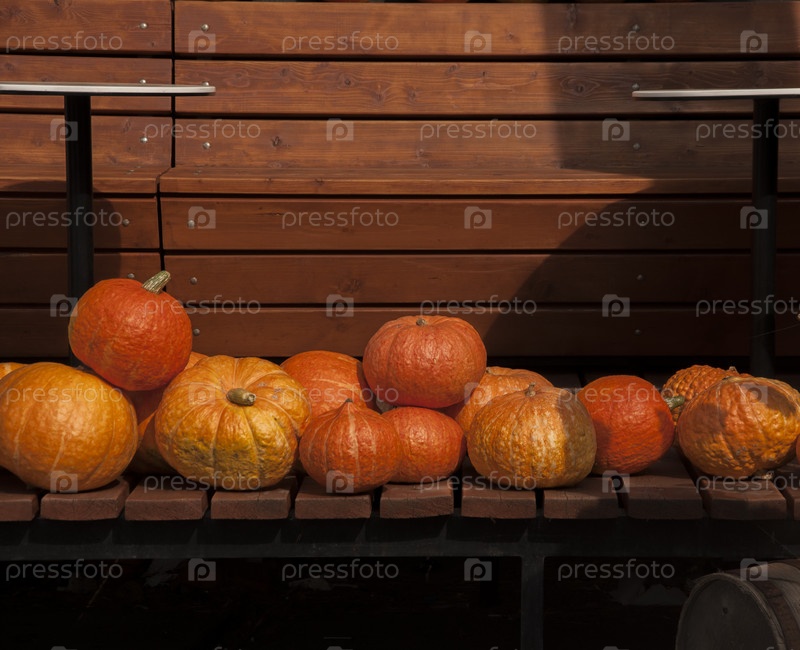 Осенний фон. Спелые тыквы на деревянном фоне. Концепция благодарения и хэллоуина