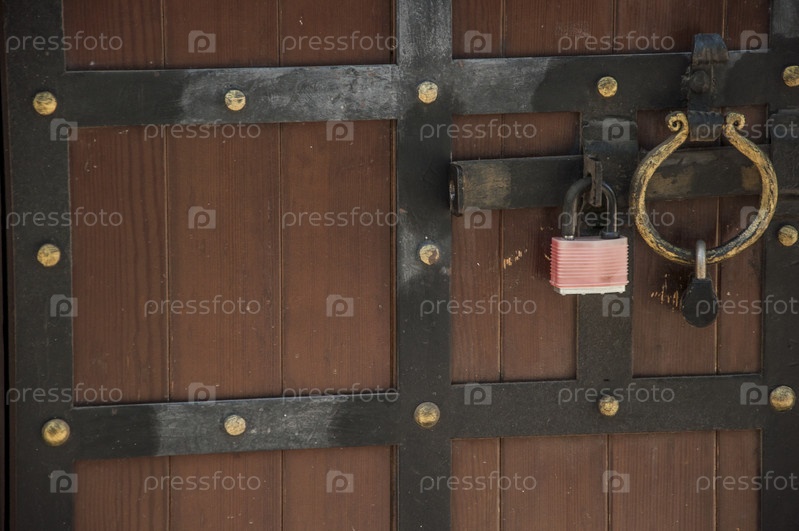 Старая металлическая дверная ручка на грубом деревянном фоне