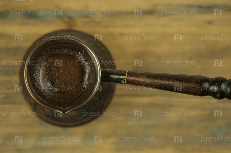 Заваривание черного кофе в джезве на завтрак ранним утром