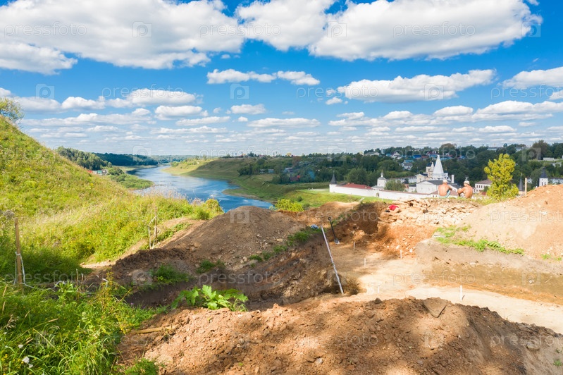 Археологические работы в городе Старица, на берегу Волги