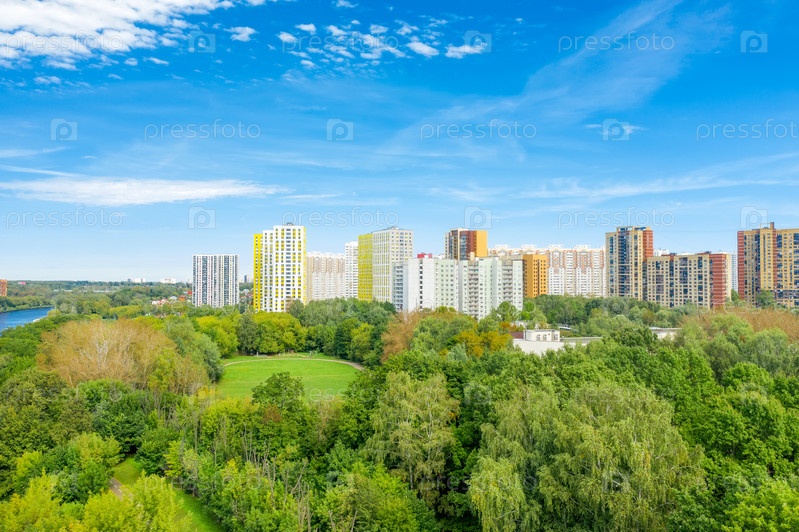 Вид с воздуха на жилые дома города Химки и окраины Москвы
