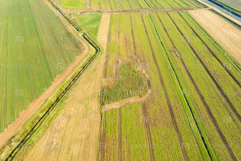 Вид сверху на сельскохозяйственные поля в осенний день