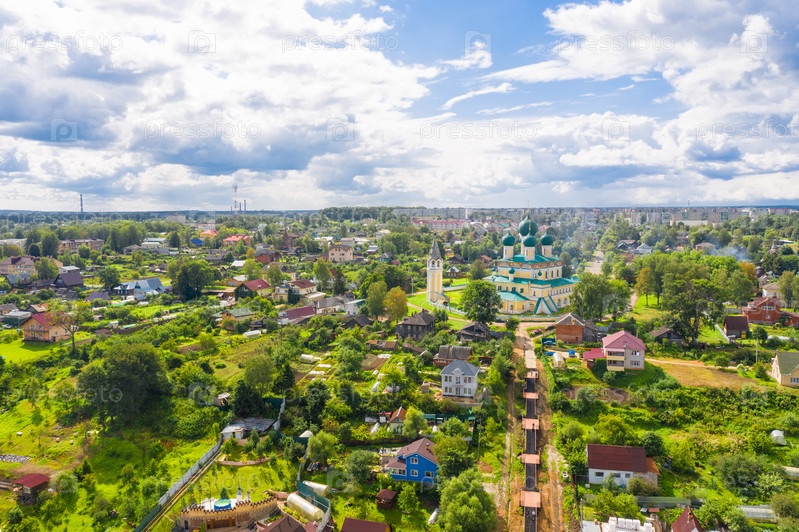 Вид с воздуха на Борисоглебскую сторону города Тутаева в летний день