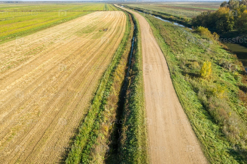 Вид сверху на сельскохозяйственные поля в осенний день