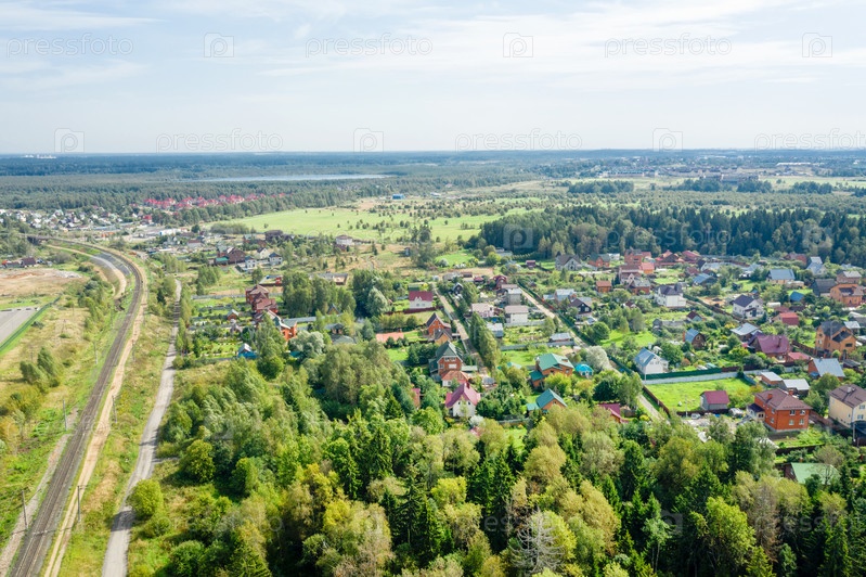 Вид с воздуха на сельскую местность и железнодорожные пути