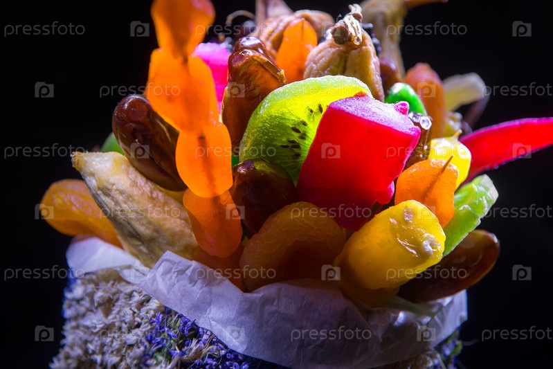 Сухофрукты в чашке из плетеных разноцветных трав