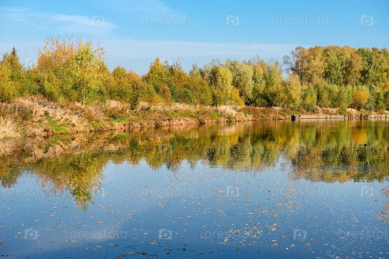 Вид на водный канал в осенний солнечный день