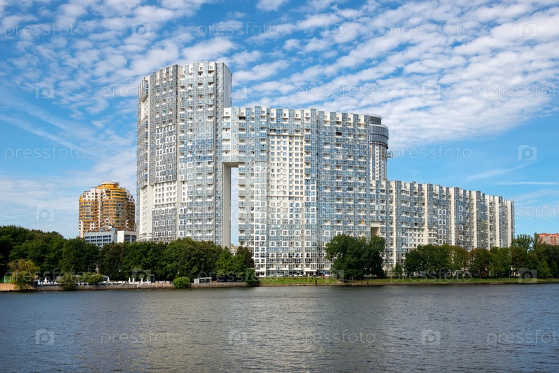 Вид на жилые дома в городе Химки на берегу канала им. Москвы