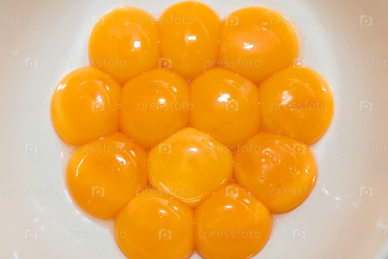 Желтки куриных яиц, отделенные от белка в белой тарелке
