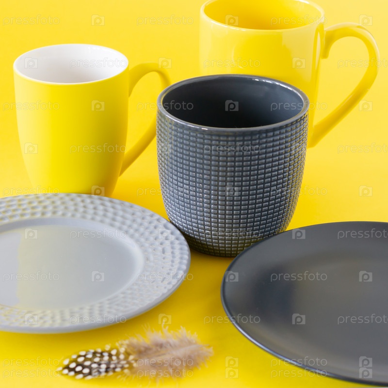 Набор посуды в модных цветах 2021 года - Ultimate серый и ярко-желтый Кухонная утварь