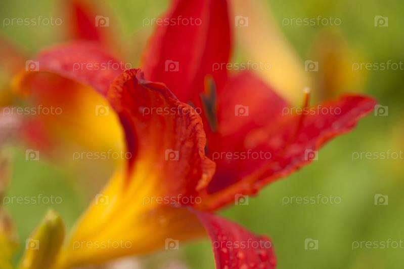 Капли росы на лепестке красной садовой лилии