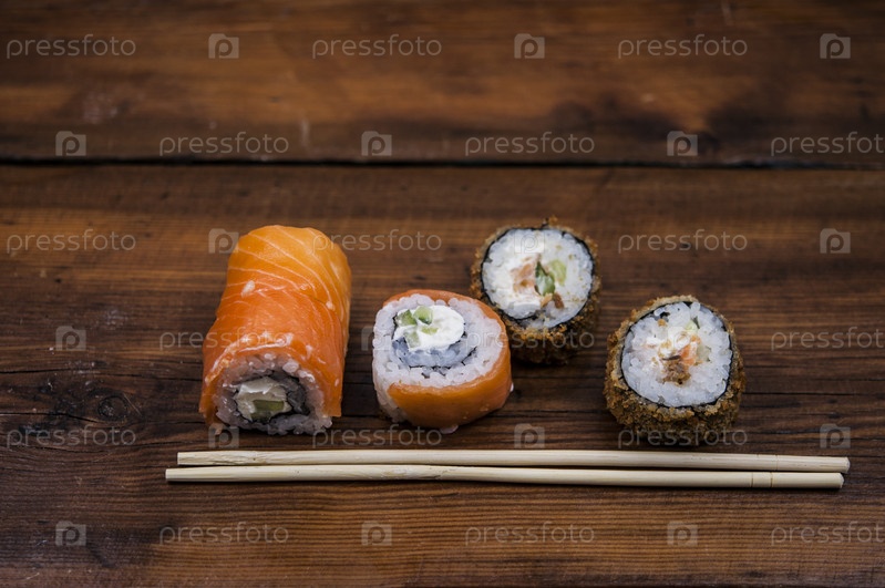 Суши на деревянном столе